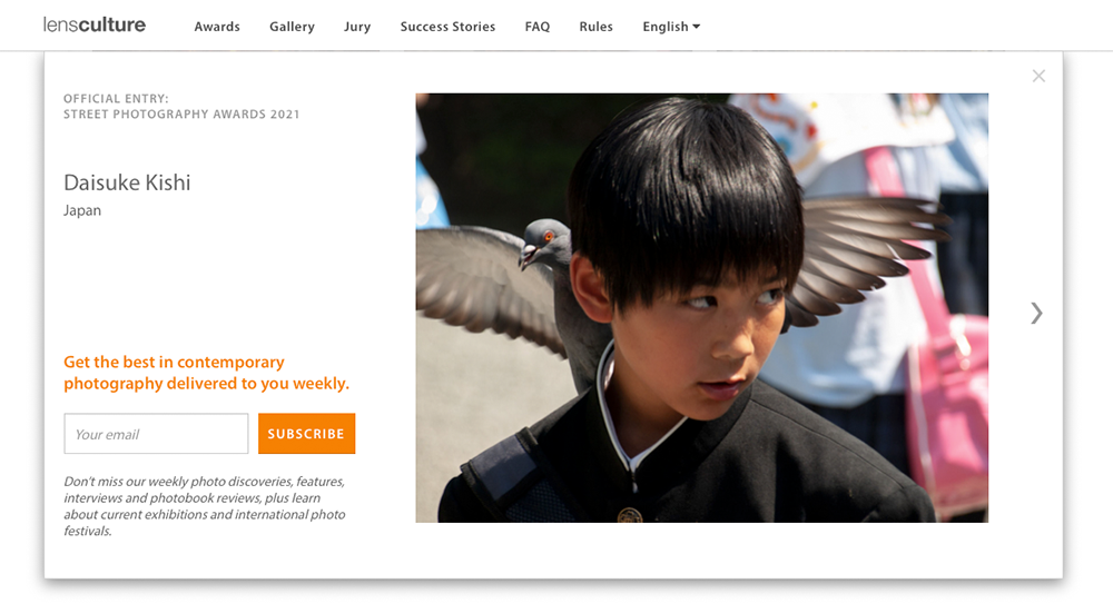 I am pleased to announce that, following the previous competition Critics’ Choice 2021, my photos has been featured once more in the Competition Gallery of the LensCulture selected by their editors. This time one of the single image entries shown above was selected in the Editors’ Picks of Street Photography Awards 2021.